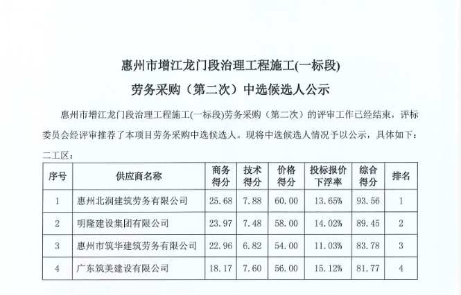 惠州市水電建筑工程有限公司勞務(wù)供應(yīng)商庫擴(kuò)庫評審結(jié)果公示……